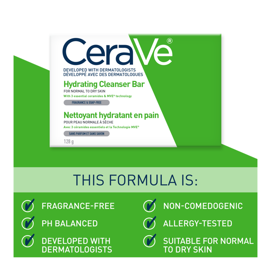 CeraVe Hydrating Cleanser Bar is the ideal first step in your hydration routine.