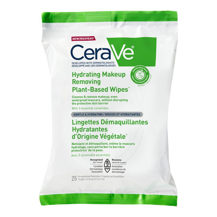 Makeup remover wipes are an effective and convenient way to cleanse skin of makeup, dirt and oil. Gentle yet effective, CeraVe’s Hydrating Makeup Removing Plant-Based Wipes can help remove even long-lasting waterproof mascara. This alcohol-free formula locks in moisture, leaving your skin feeling refreshed, clean and hydrated without a sticky or greasy feeling.