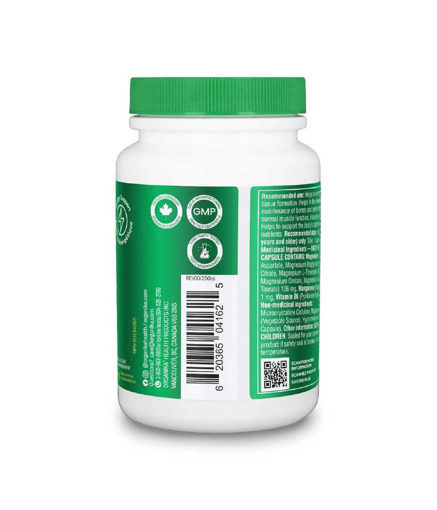 MEDICAL INGREDIENTS: EACH VEGETARIAN CAPSULE CONTAINS Magnesium (from Magnesium Aspartate, Magnesium Bisglycinate, Magnesium Citrate, Magnesium L-Threonate, Magnesium Malate, Magnesium Orotate, Magnesium Oxide, Magnesium Taurate) 106 mg, Manganese (Manganese (II) Citrate) 1 mg, Vitamin B6 (Pyridoxine Hydrochloride) 10 mg.